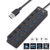 USB 3.0 7-port hub with independent switch and power indicator - compatible with MacBook, laptop, Surface Pro, PS4, PC, external hard drive