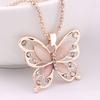 Fashion Womens Lady Rose Gold Opal Butterfly Pendant Necklace Sweater Chain Hot