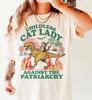 Men Black Print T-shirt Childless Cat Ladies Against Fascism, Feminist for Kamala Harris President No-Cut Transfer Paper Print Cotton Tshirt