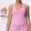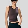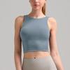 Double-sided Nylon Solid Color Tight Belly Cover Round Neck Sports Vest Running Fitness Yoga Wear Long Top Women