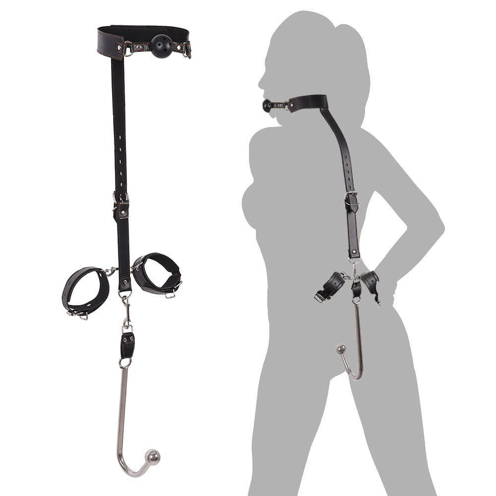 סט ג'יואי מתכת אנאלי ושעבוד עם אזיקים, כדור פה וצעצוע פתוח לנרתיק