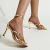 fashion Shoes for Women 2024 Hot Sale Buckle Chain Women's Sandals Summer Square Toe Solid Open Toe High Heels Dress Sandals Women