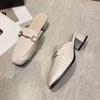 אופנה כיסוי קיץ כפכפי אצבע אישה עקבים נמוכים עבים פרדות עור מוצק כפכפי נשים נשים שקופיות חיצוניות נעלי נשים סנדלים