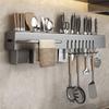 מחזיק סכינים לתלייה על הקיר מדף מנירוסטה מתלה אחסון למטבח ללא מסמרים סכו"ם עם וו מארגן לארון מטבח