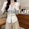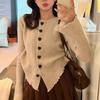 Pure Wind Women's Clothing Early Autumn New Long-sleeved Cardigan Blouse To Hide The Belly Meat Knitted Bottom Shirt To Show Thin Women