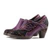 Johnature נעלי עקב גבוהות מודפסות רטרו, נעלי פאמפ מעור אמיתי, סגנון אתני, פרח, רוכסן צדדי, נעלי נשים