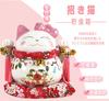 Cartoon Maneki Neko Ornament Ceramic Lucky Cat Figurine Pink BOW-TIE Fortune Cat Statue Home Decorative Money Box Piggy Bank