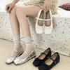 Bow Square Head One-Word Buckle Mary Jane Shoes Small Leather Shoes Women'S Flat Single Shoes Light Mouth Shoes Children
