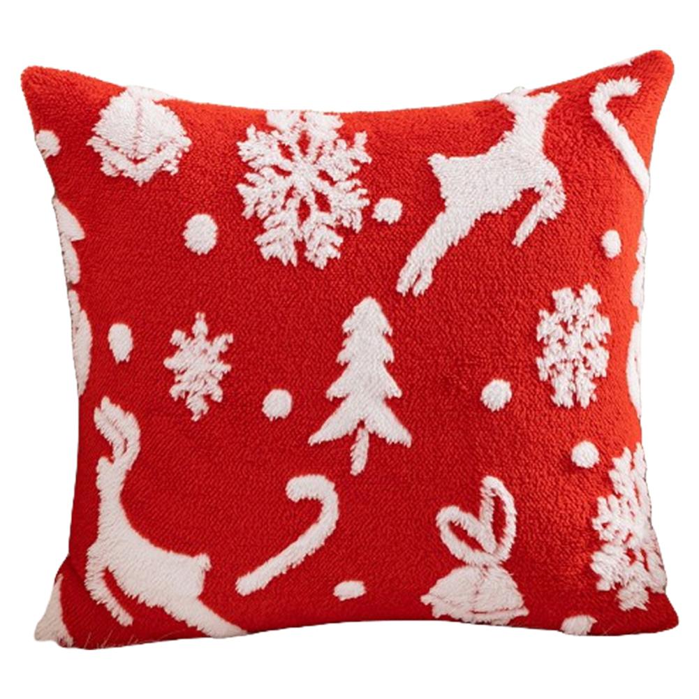 Christmas Cushion Cover Festival Pillow Case for Sofa Decor (Red Jumping Elk) QD