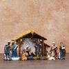 סצנת לידה לחג המולד מוארת מיניאטורית מתנת חג המולד בעבודת יד דתית לידת ישו פסל