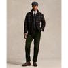 Куртка прямого кроя с вельветовым воротником, тремя накладными карманами спереди, застежкой на пуговицы и регулируемыми манжетами.
