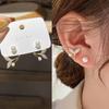 זוג עגילים צמודים פרח פנינה סינתטית קוריאניים לנשים תכשיטים אלגנטיים למסיבה עם עגילי פנינה ארבע שיניים