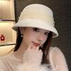 Hepburn Wind after the pleated fisherman hat High quality Australian wool top hat Fashion French mesh pearl chain beret