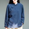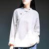 חולצה סינית רטרו כותנה ופשתן עם שרוולים ארוכים רופפת עם כפתור צווארון