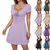Women's Loose Casual Solid Color V-Neck Bow Tie Short Sleeved Dress Short Sleeved Dress