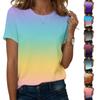 חולצת טי נשים עם קפלים, צווארון עגול, הדפס גרדיאנט, שרוולים קצרים, פתח בצד התחתון