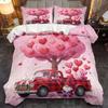 סט ציפה לפוך ליום האהבה מידה קינג, סט מצעים משאית אדומה לב עץ, כיסוי לפוך פרחי ורד טריילר מתנות רומנטיות