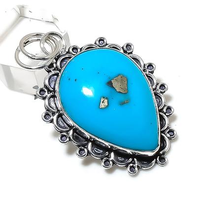 תליון כסף סטרלינג 925 עם אבן חן טורקיז טיבטי טבעי 2.56" p0V17