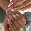 24 Pieces European and American French Wearing Nail Pads 3D Pink Fake Nail Art Patches Removable 24 Nail Pads