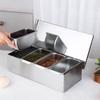 Seasoning Containers Set with Cover Stainless Steel Seasoning Box Spice Jar Square Condiment Pepper Shakers Rack Kitchen Tools