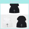 Black Cross Warm Knitted Hat Beanie, Skull Cap Warm Cancer Chemo Stylish Headwear Knitted Cap Beanie