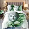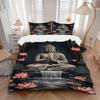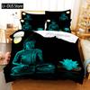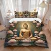 Buddha Statue Duvet Cover Set King/Queen Size,Exotic Golden Buddha Lotus Flowers Comforter Cover Adults Polyester Bedding Set