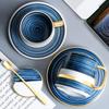 Coffee Cup &Saucer With Lid Spoon Set Blue Phnom Penh Waterware Nordic Ceramic Mug Holiday Wedding Gifts Home Kitchen Drinkware