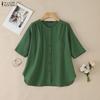 ZANZEA חולצות קיץ לנשים עם צווארון עגול ושרוולים באורך חצי