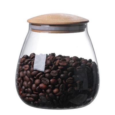 צנצנת זכוכית אטומה שקופה צנצנת אחסון פולי קפה צנצנת דגנים צנצנת תה אטומה עם מכסה וידית עץ
