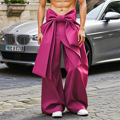 INCERUN מכנסי פליז ארוכים מתרחבים קז'ואליים עם גומי מותן אחורי אלסטי גבוה לגברים