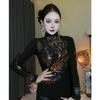 Sexy Mesh Velvet Base Shirt with Long Sleeve Winter Beaded Half Turtleneck Top with Long Sleeve T-shirt