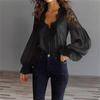טופ תחרה קיצי לנשים עם טמפרמנט, שילוב רשת, וי עמוק