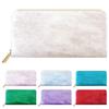 Genuine Leather Round Pencil Case Thin Compact Slim Pencil Case Pen Holder Simple Stationery Cowhide Embossed Enamel Leather Stained Glass Blue