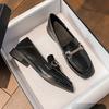 נעלי עור קטנות נעלי נשים עקב עבה שחור עקב בינוני מוקסינים מידה גדולה נעלי נשים נעלי עקב נעלי נשים