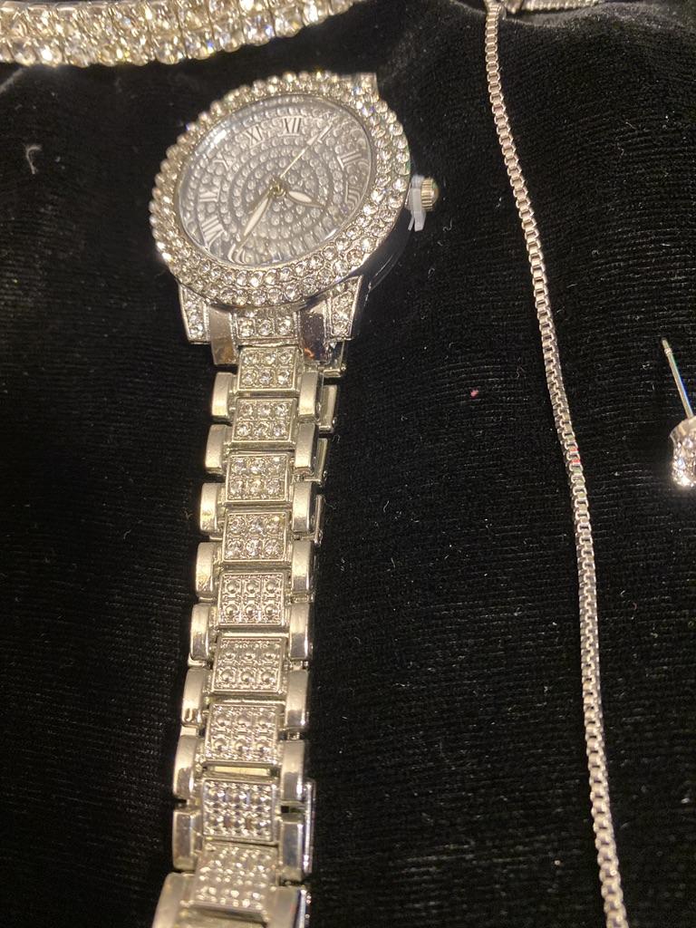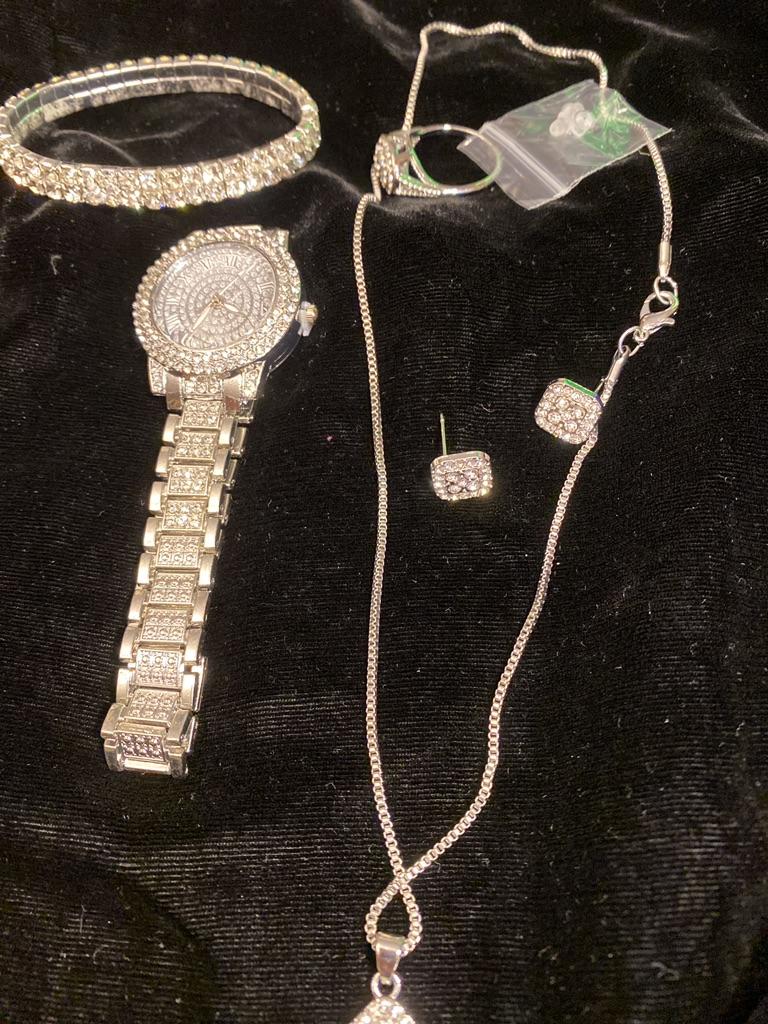 6 יח'\סט שעוני נשים, שעון קוורץ ריינסטון יוקרתי, סט שעון אנלוגי ותכשיטים אופנה רומית, מתנה לאמא ולה