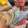 צעיף משולש פרחוני תחרה צרפתית בז' - סרט שיער רב-שימושי או קישוט דקורטיבי לתיק