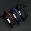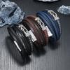 צארם סגנון טרנדי צמיד גברים עור בשכבות עם צמידי נירוסטה בעבודת יד צמיד