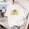 Summer Women's Loose College Style Fresh Cute Elephant Print Short Sleeve T-shirt