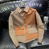 חולצת גברים היפ-הופ משוחררת טלאים משובצים שרוול ארוך