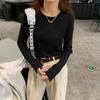 Women's Solid Color Long Sleeved Top Summer Micro Transparent Style Round Neck T-shirt Korean Minimalist Lady Clothing