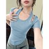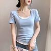 Fake Two-piece Contrasting Short-sleeved T-shirt for Women's Summer New Slim Body Top Coat