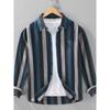 Men's Spring and Summer Loose Thin Section Striped Seven-minute Sleeve Shirt Youth Square Collar Breathable Casual Tops