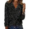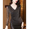 Design-sequin V-neck Long-sleeved T-shirt for Women's Spring and Autumn Slim and Versatile Top