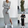 חבילה סקסית של מזג סתיו וחורף לנשים שמלות מפוצלות בצוואר עגול ירך