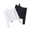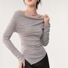 One-shoulder Waist-closing Pleated Temperament Off-shoulder T-shirt for Women In Autumn Long-sleeved New Sexy Underwear Top