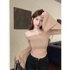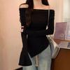 Korean Version of Autumn Design with Irregular Folds and One-shoulder Top for Women with Small Versatile Long-sleeved T-shirt