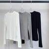 חולצת בסיס כותנה חוט דק צווארון עגול שרוול ארוך לנשים לסתיו ולחורף חולצת טי חדשה טופ עם כתפיים תחתונים