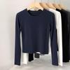 טי שירט קצרה מכותנה טהורה בגזרה גבוהה למותן לנשים בסגנון סתיו חדש עם טופ שרוולים ארוכים חושף טבור חולצת בסיס צמודה