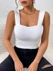 גופייה עם צווארון מרובע רצועות כתף רחבות קרופ חולצות נשים קיץ Camis צבע אחיד צינור אופנה צינור אופנה נשי קצוץ אפוד Y2K בגדי Y2K