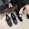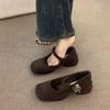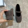 French high-end dark brown thick heel retro woolen single shoes women's shoes autumn and winter middle heel commuting evening cotton shoes